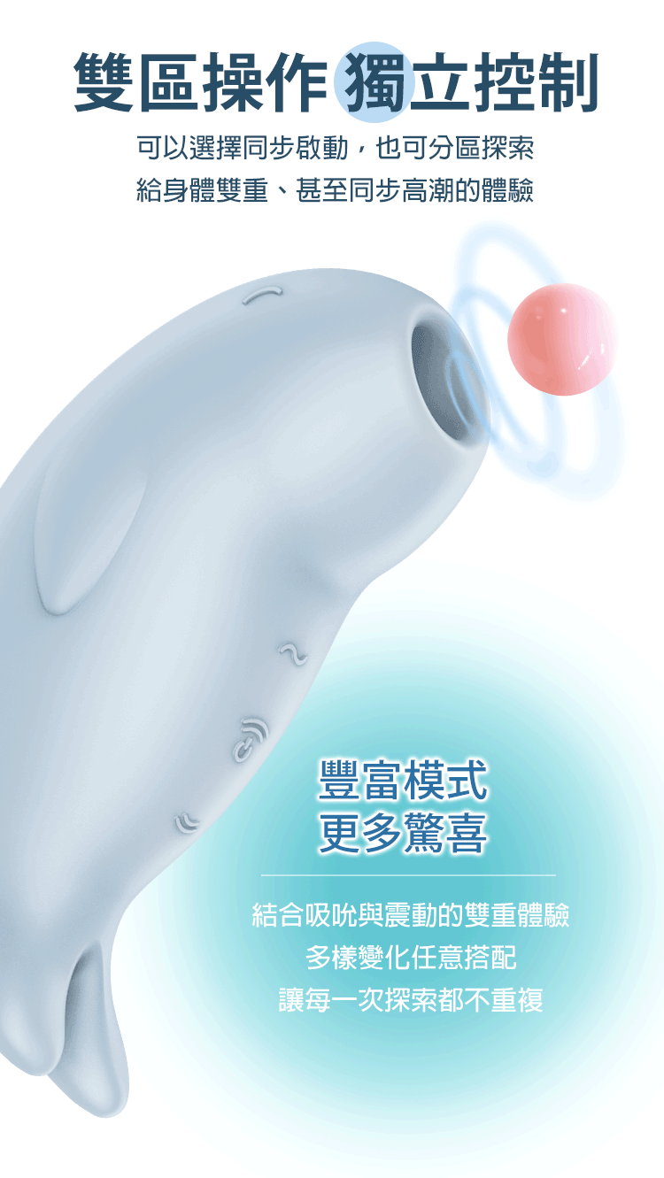 集結 吸吮 + 震動 於一身,帶來獨特的 2 in 1 快感體驗。