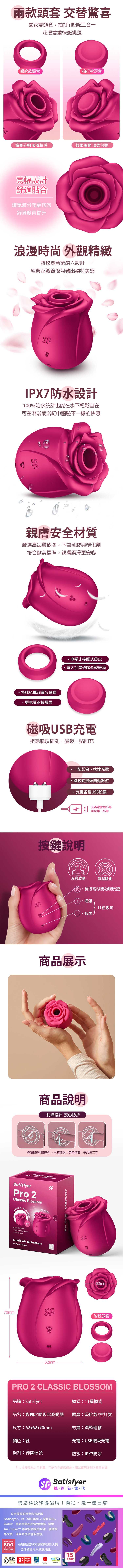 品名:Satisfyer|Pro 2 Classic Blossom|玫瑰之吻 吸吮波動器